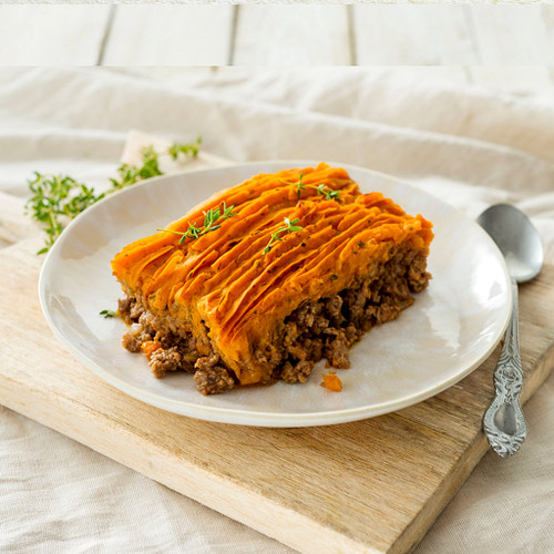 Sweet Potato (42%) (Sulphites) (Contains Preservative [220]), Beef Mince (35%), Onion, Carrot, Celery, Tomato Paste, Mustard Paste (Contains Food Acid (Acetic)), Clarified Butter (Milk), Salt, Pepper, Cinnamon, Cloves, Dried Parsley.